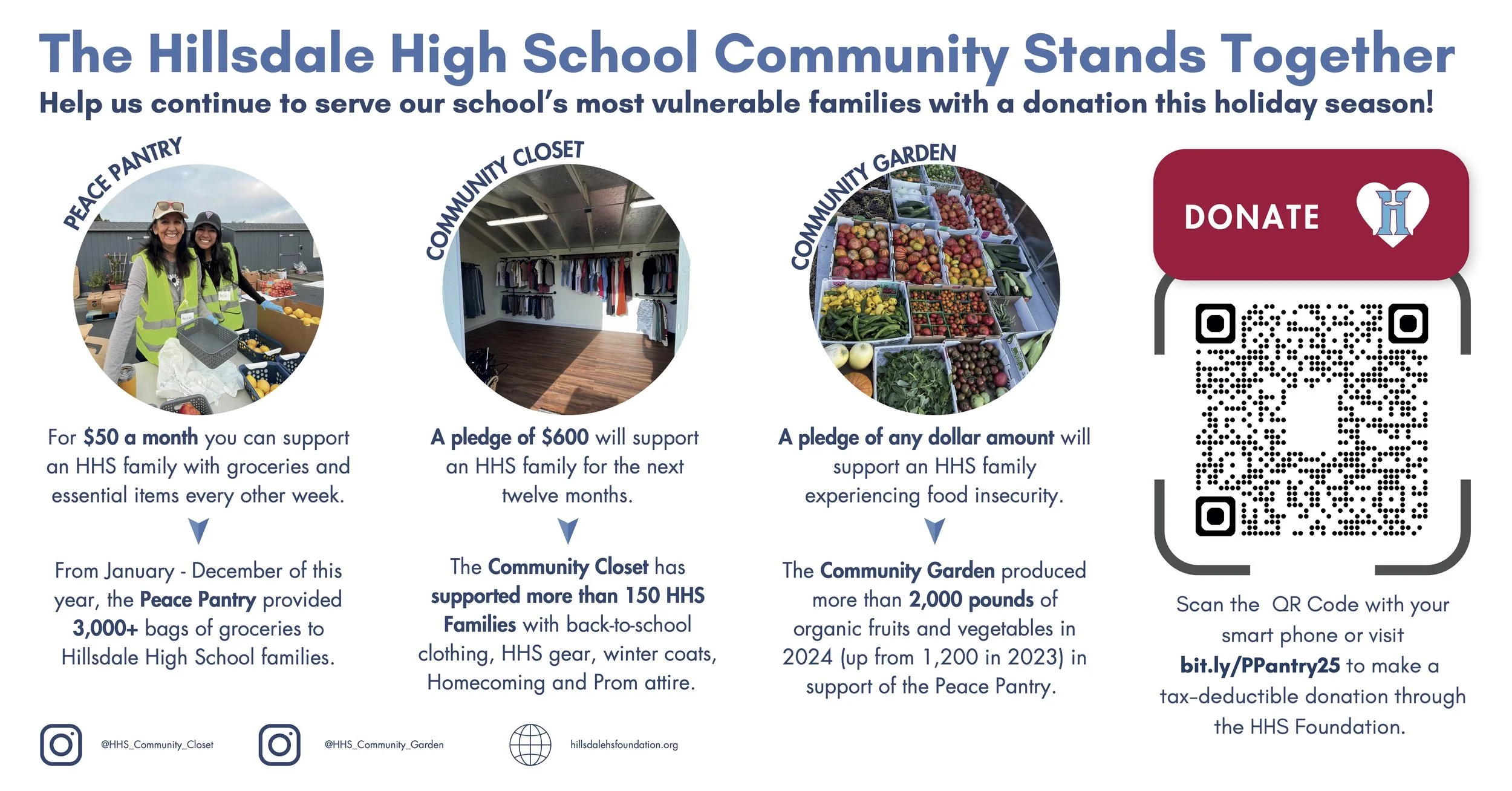 Please consider making a tax-deductible donation to our Peace Pantry so we can continue to offer support through our Hillsdale Peace Pantry, Community Closet, and Community Garden.