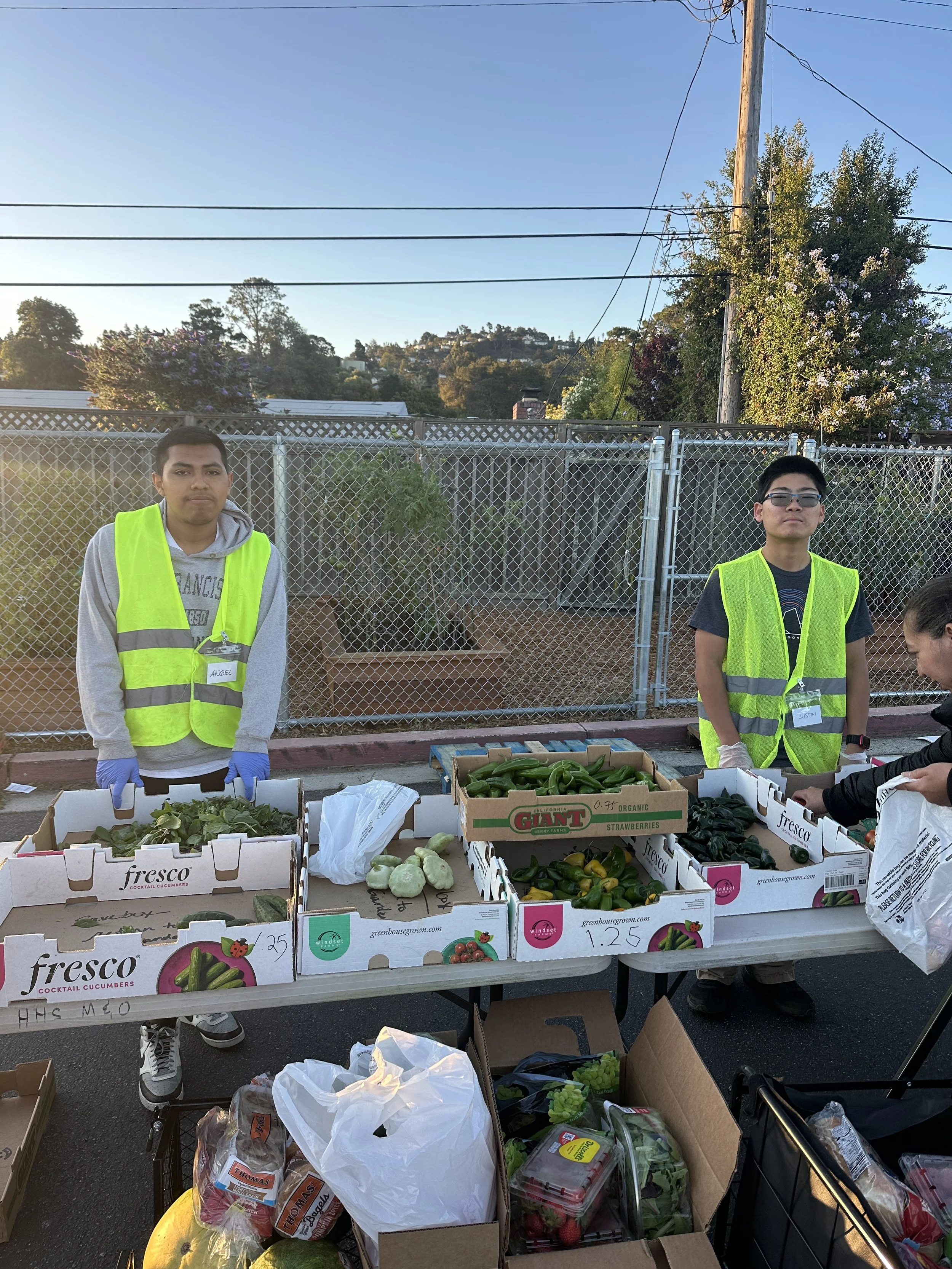 HHS Peace Pantry partnered with Second Harvest Food Bank (SHFB) in January 2020, and they provide us with 600 boxes of food (three boxes per family) every week that include fruits/vegetables, non-perishable food, eggs, dairy, and meat. Thanks to our community support and donations we purchase a bag of groceries and essential items through our partnership with Mi Rancho Market to supplement what we receive from SHFB. Lastly, our friends at Transfiguration Church and their dedicated baking team provide families with homemade baked bread, cookies, and desserts every Friday.